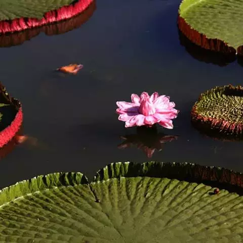 红花睡莲,多年生浮水植物。叶浮于水面,卵形,革质,表面绿色,背面紫红色,幼叶红色,花昼开夜合,浮于…