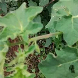 ⑸幼苗极易徒长(主要是下胚轴易伸长)。故出苗后揭网要及时,播种密度不能过大,适当早间苗;苗前期要适当控水,分苗要及时。也可用120ppm15%多效唑(8克/10千克水)控高。