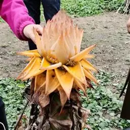 紫苞芭蕉形如一枝亭亭玉立、含苞待放的荷花,但却开在高高的芭蕉树上,这就是紫苞芭蕉。
