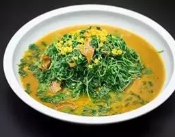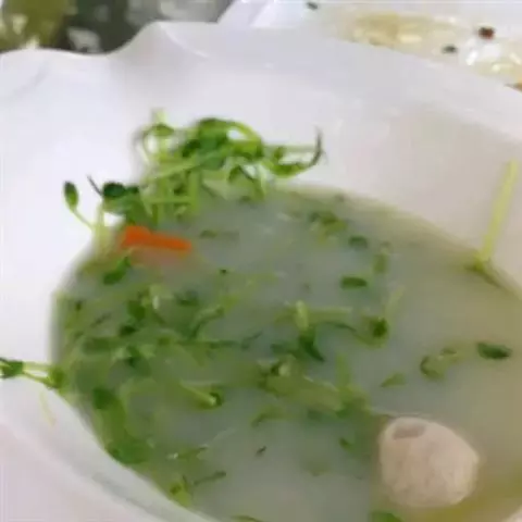 上汤豆苗是一道菜品,制作原料主要有豌豆苗、鸡腿菇、红柿子椒等。调味后撒少许姜丝,…