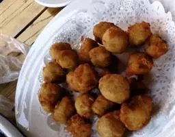 在维吾尔族的烤包子中,除了用馕坑烤制的以外,还有用油炸的包子,叫“桑布萨”。做馅的原料和其它烤包子相似,不过事先要在锅里先炒一下,然后再用。这种包子形似饺子,用花边刀压边,压出整齐的花纹,很像小巧的艺术品。这种包干除用来招待客人外,还常作为办喜事时互相馈赠的礼物。烤包子所用的坑,叫“沙木萨吐努尔”,比一般馕坑要小。一般用小号的水缸,取去缸底,倒扣过来,四周用土坯垒齐,烤包子时,要往烧热的坑里洒些盐水,以防止包子脱落。