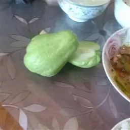 1.新鲜猪肉剁成肉糜,调入老抽、油、盐、葱末混合。和好面粉擀成包子皮,把馅料包入面粉皮中。