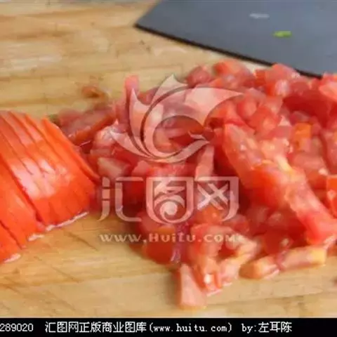 3、把羊腿肉切成5mm大小的丁,加入盐(1茶匙),孜然,香油和水搅拌均匀后,腌制5分钟。