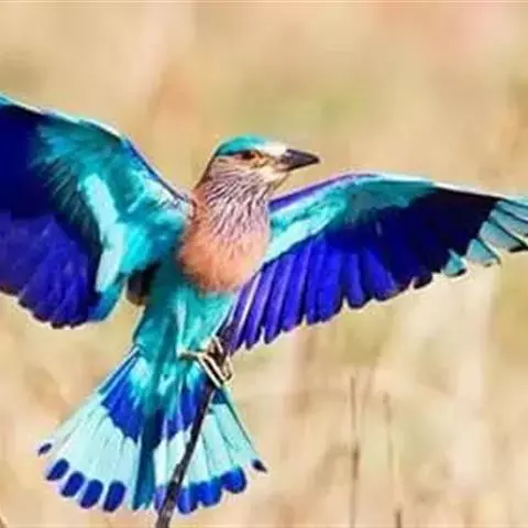 蓝胸佛法僧中型鸟类,体长31~33厘米,通体淡蓝绿色。翅膀长而宽,除栗色背羽外大部分为蓝色。…
