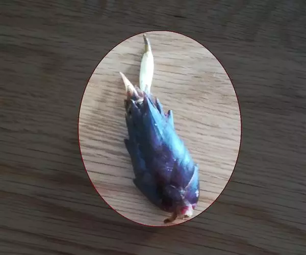虹膜暗褐色,嘴朱红色,上嘴先端黑色,脚、趾朱红色,爪黑色。
