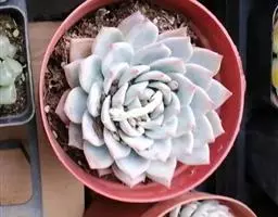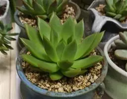 大和锦是景天科拟石莲花属的多肉植物。肉质叶排成紧密的莲座状,广卵形至散三角卵形,背面突起呈龙骨状,…