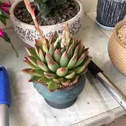 此外还可用老株旁边萌发的幼株进行扦插。扦插前需将切口晾干,再将下端茎干浅埋入沙土中。其余注意事项同叶插。