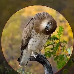 白肩雕:又名御雕,是大型猛禽。体长73-84厘米。体羽黑褐色,头和颈较淡,肩部有明显的白斑,在黑褐…