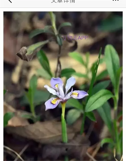 大扁竹兰扇形鸢尾,多年生草本,根茎横生,粗壮,黄白色,节明显;叶黄绿色,集生茎顶,叶片宽剑形,花蓝…