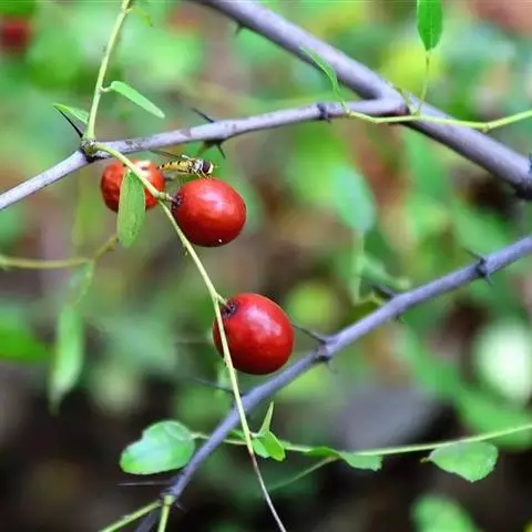 酸枣 Hu ex H.F.Chow.),鼠李科枣属木本植物。小枝呈“之”字形弯曲,褐色,托叶刺有2种,…