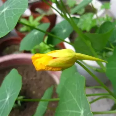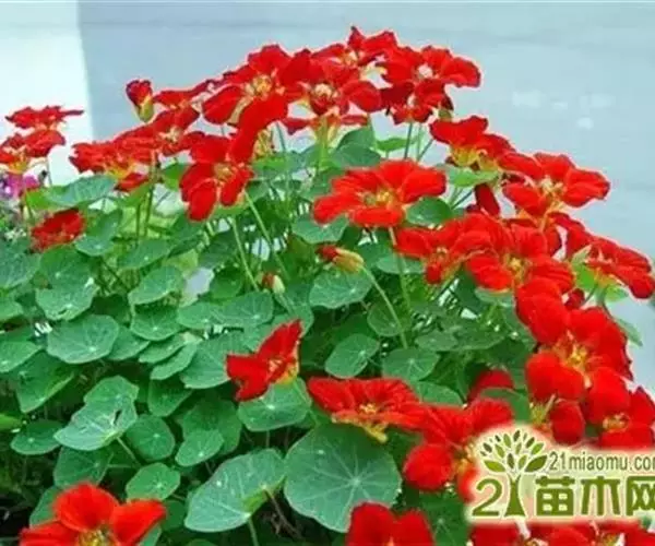 金莲花常用播种繁殖,也可用嫩枝扦插。一般于3月播种,7月至8月开花;6月播种,国庆节开花;9月播种,春节开花;12月播种,“五一”开花。播种先用40℃至45℃温水浸泡一夜后,将其点播在装有素沙的浅盆中,上覆细沙厚约1厘米,播后放在向阳处保持湿润,10天左右出苗,幼苗2片真叶时分栽上盆。扦插以春季室温13℃至16℃时进行,剪取有3片至4片叶的茎蔓,长10厘米,留顶端叶片,插入沙中,保持湿润,10天开始发根,20天后便可上盆。金莲花茎蔓生,必须立支架,当幼苗长到3片至4片真叶时进行摘心,使其多发侧枝,上架前除留主枝及粗壮侧枝外,还需摘心并均匀地绑缚在架上,扎成各种装饰形式。当茎蔓生长达30厘米至40厘米时,可用 100毫克/升多效唑叶面喷布,促使矮化。花后把老枝剪去,待发出新枝开花。对已经衰老的植株,当气温达10℃以上时,可在基部剪去上部枝叶,施入20%腐熟的人粪肥,放入7℃左右的温室内,促使重新发枝,形成新株丛。 金莲花栽培宜选用富含有机质的沙壤土 ,PH值 5至6。一般在生长期每隔3周至4周施一次10%至15%饼肥水,开花前改用半月施1次至2次鸡粪液肥或1%磷酸二氢钾,花后施25%饼肥水或者20%畜粪肥,秋末施一次30%全元素复合肥作越冬肥,每次施肥后要及时松土,改善通气性,以利根系发育。金莲花喜湿忌涝,土壤水分保持50%左右,生长期间浇水要采取小水勤浇的办法,春秋季节 2天至3天浇一次水,夏天每天浇一次水,并在傍晚往叶面上喷水一次,以保持较高的湿度,开花后减少浇水,防止枝条旺长。金莲花喜阳光充足,不耐荫蔽,春秋季节应放在阳光充足处培养,夏季适当遮阴,盛夏放在凉爽通风处,北方10月中旬入室,南方11月上旬入室,放在向阳处养护,室温保持10℃至15℃,适当控制肥水。另外生长过程中如发生蚜虫和白粉虱,要用吡虫灵、扑虱灵、敌杀死等无公害农药及时防治。