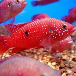 红宝石鱼是鲈行目慈鲷科伴丽鱼属 鱼类,又名红花鲈、宝石鱼。个体较大,身长12—15厘米。背鳍宽大,…