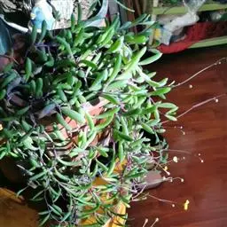 多年生草本植物,全株无毛,近基部多分枝。初期直立生长,逐渐垂吊。茎灰绿色,株长50厘米以上。