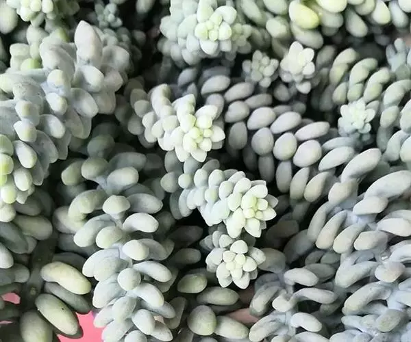 新玉缀(学名:Sedum burrito Moran) 是景天科、景天属的多年生植物,多肉植物。原产于墨西哥,又名新玉串。与玉缀近缘。