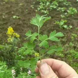 叶:二回三出或近三回三出,小叶三裂或三深裂,具全缘的披针形裂片,裂片长2-2.5厘米,宽5-8毫米;下部茎生叶常具长柄;叶柄基部具鞘。