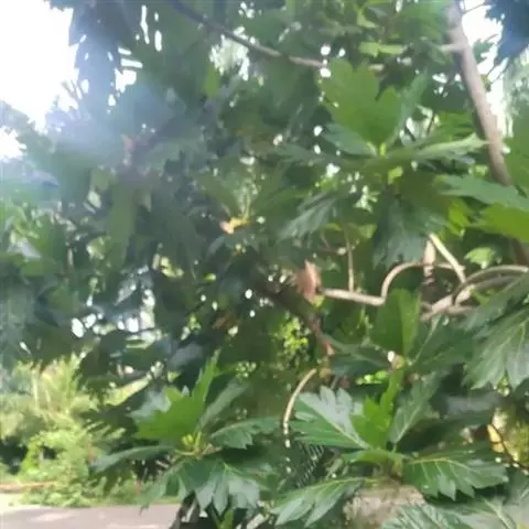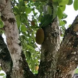 波罗蜜(学名:Artocarpus heterophyllus Lam.)是桑科波罗蜜属植物,常绿乔木,高10-20米,胸径达30-50厘米;托叶抱茎环状,遗痕明显。叶革质,螺旋状排列,椭圆形或倒卵形,长7-15厘米或更长,宽3-7厘米,先端钝或渐尖,基部楔形,成熟之叶全缘。花雌雄同株,花序生老茎或短枝上,雄花序有时着生于枝端叶腋或短枝叶腋。聚花果椭圆形至球形,或不规则形状,幼时浅黄色,成熟时黄褐色,表面有坚硬六角形瘤状凸体和粗毛;核果长椭圆形。花期2-3月。