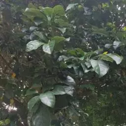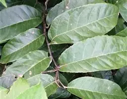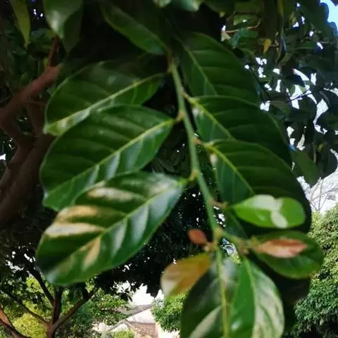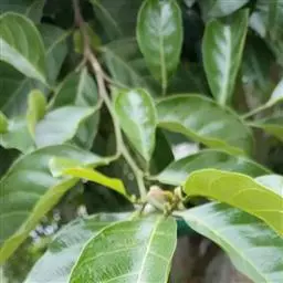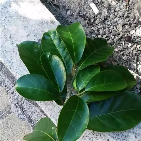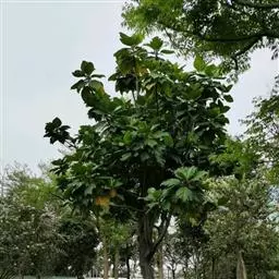 常绿乔木,高10-20米,胸径达30-50厘米;老树常有板状根;树皮厚,黑褐色;小枝粗2-6毫米,具纵绉纹至平滑,无毛;托叶抱茎环状,遗痕明显。叶革质,螺旋状排列,椭圆形或倒卵形,长7-15厘米或更长,宽3-7厘米,先端钝或渐尖,基部楔形,成熟之叶全缘,或在幼树和萌发枝上的叶常分裂,表面墨绿色,干后浅绿或淡褐色,无毛,有光泽,背面浅绿色,略粗糙,叶肉细胞具长臂,组织中有球形或椭圆形树脂细胞,侧脉羽状,每边6-8条,中脉在背面显著凸起;叶柄长1-3厘米;托叶抱茎,卵形,长1.5-8厘米,外面被贴伏柔毛或无毛,脱落。