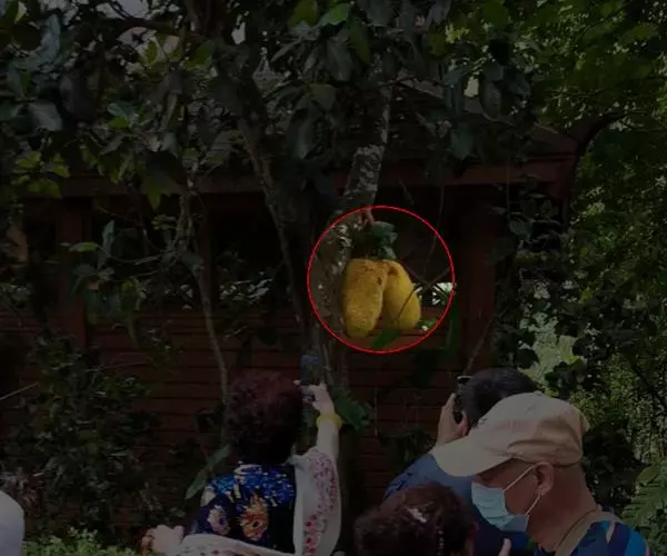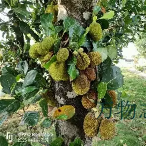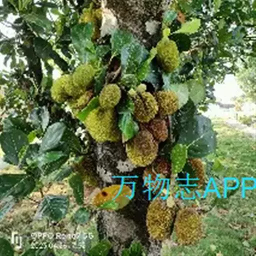 花雌雄同株,花序生老茎或短枝上,雄花序有时着生于枝端叶腋或短枝叶腋,圆柱形或棒状椭圆形,长2-7厘米,花多数,其中有些花不发育,总花梗长10-50毫米;雄花花被管状,长1-1.5毫米,上部2裂,被微柔毛,雄蕊1枚,花丝在蕾中直立,花药椭圆形,无退化雌蕊;雌花花被管状,顶部齿裂,基部陷于肉质球形花序轴内,子房1室。聚花果椭圆形至球形,或不规则形状,长30-100厘米,直径25-50厘米,幼时浅黄色,成熟时黄褐色,表面有坚硬六角形瘤状凸体和粗毛;核果长椭圆形,长约3厘米,直径1.5-2厘米。花期2-3月。