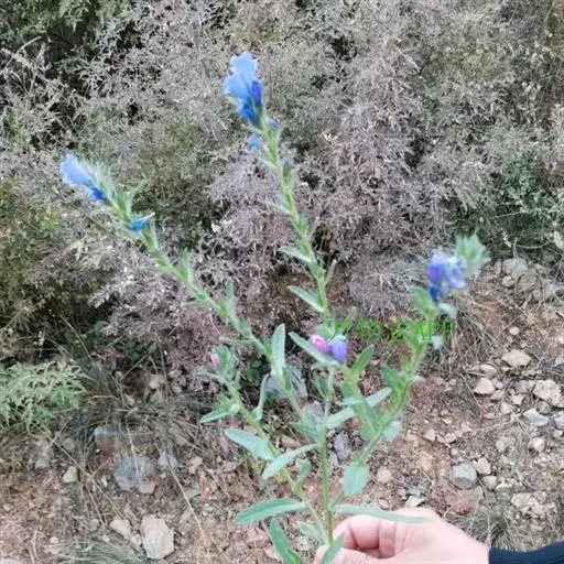 蓝蓟(学名:Echium vulgare L.)是紫草科、蓝蓟属二年生草本植物。茎高达100厘米,通常多分枝。基生叶和茎下部叶线状披针形,两面有长糙伏毛;花序狭长,花多数,较密集;苞片狭披针形,长4-15毫米;花萼5裂至基部,外面有长硬毛,裂片披针状线形,长约6毫米,果期增大至10毫米;花冠斜钟状,两侧对称,蓝紫色,外面有短伏毛,花药短,长圆形,柱头顶生,细小。小坚果卵形。