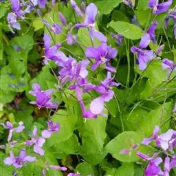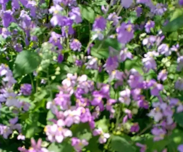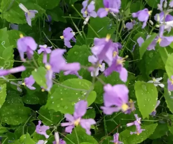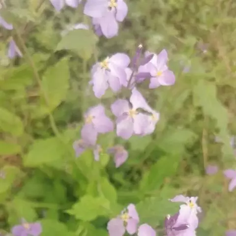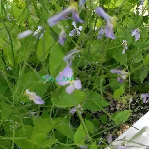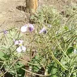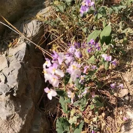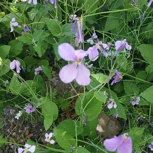 花紫色、浅红色或褪成白色,直径2-4厘米;花梗长5-10毫米;花萼筒状,紫色,萼片长约3毫米;花瓣宽倒卵形,长1-1.5厘米,宽7-15毫米,密生细脉纹,爪长3-6毫米。长角果线形,长7-10厘米。具4棱,裂瓣有1凸出中脊,喙长1.5-2.5厘米;果梗长8-15毫米。种子卵形至长圆形,长约2毫米.稍扁平,黑棕色,有纵条纹。花期4-5月,果期5-6月。