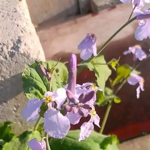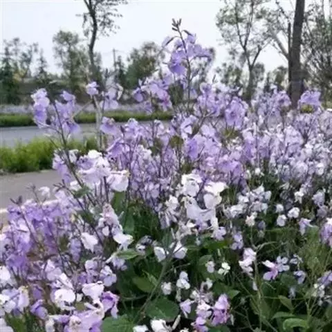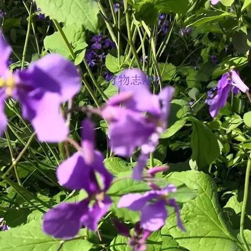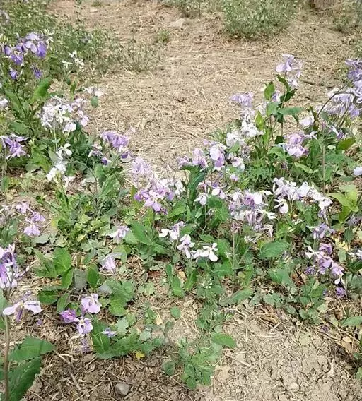 紫色的诸葛菜花 田间管理间苗与补苗:直播苗可在苗高8-10厘米时间苗,株距10-15厘米。移植苗在移栽1周后检查移栽苗成活情况,如有缺苗要及时补栽。