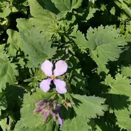 诸葛菜(学名:Orychophragmus violaceus (L.) O. E. Schulz)是十字花科,诸葛菜属一年或二年生草本植物,高可达50厘米,无毛;茎直立,基生叶及下部茎生叶大头羽状全裂,顶裂片近圆形或短卵形,侧裂片卵形或三角状卵形,叶柄疏生细柔毛;花紫色、浅红色或褪成白色,花萼筒状,紫色,花瓣宽倒卵形,密生细脉纹,长角果线形,种子卵形至长圆形,黑棕色,4-5月开花,5-6月结果。