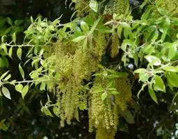 坚果卵形至卵圆形,直径0.8-1.2厘米,高1.7-2厘米,果脐平坦。花期3-4月,果期9-10月。