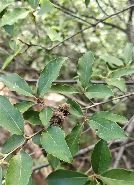 雄花序长8-12厘米,花序轴密被白毛,雄蕊8;雌花序长1.5-3厘米。壳斗杯状,包着坚果1/4-1/3,直径1-1.2厘米,高5-8毫米;小苞片长三角形,贴生,边缘具柔毛。