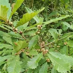 枹栎是壳斗科栎属的落叶乔木植物,高可达25米。树皮灰褐色;幼枝被柔毛,不久即脱落;冬芽长卵形,…