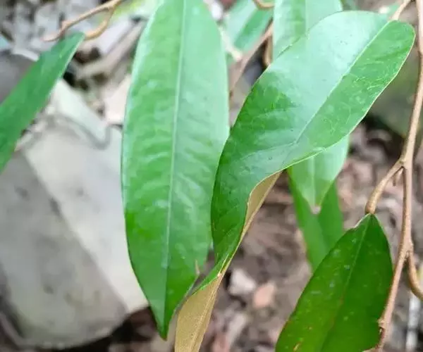叶长椭圆形或披针形,稀卵形,长7-15厘米,宽2-5厘米,稀更短或较宽,顶部短尖或渐尖,基部近于圆或宽楔形,有时一侧稍短且偏斜,全缘或有时在近顶部边缘有少数浅裂齿,或二者兼有,中脉在叶面凹陷或上半段凹陷,下半段平坦,侧脉每边11-15条,支脉通常不显,或隐约可见,叶背的蜡鳞层颇厚且呈粉末状,嫩叶的为红褐色,成长叶的为黄棕色,或淡棕黄色,很少因蜡鳞早脱落而呈淡黄绿色;叶柄长1-2厘米,嫩叶叶柄长约5毫米。
