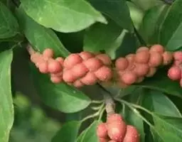 聚合果长约8厘米,直径约3厘米;蓇葖卵圆形或倒卵圆形,长1-1.5厘米,熟时黑色,具白色皮孔;种子深褐色,宽倒卵圆形或倒卵圆形,侧扁。花期2-3月,果期9-10月。