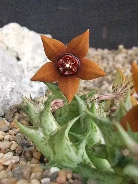 大花犀角是夹竹桃科犀角属的多年生肉质草本植物,茎基部分枝,有齿状突起,灰绿色,形如犀牛角,花大,…
