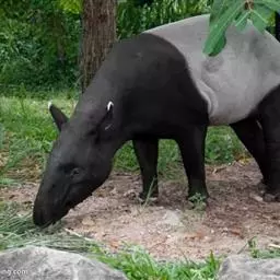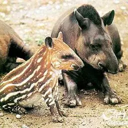 貘(学名:Tapiridae、Tapirus):貘科仅1属5种。分布于东南亚(1种)和南美洲(4种)。现存最原始的奇蹄类,保持前肢4趾后肢3趾等原始特征。体型似猪,有可以伸缩的短鼻,善于游泳和潜水,植食性。