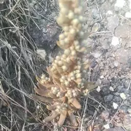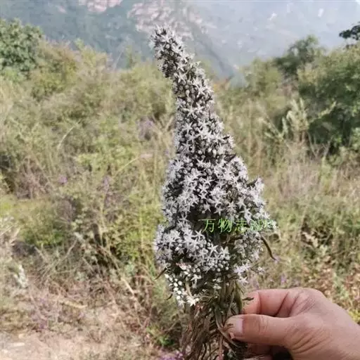 本品茎呈细长圆柱形,长5~27cm,直径2~6mm。表面灰棕色,具多数突起的残留叶基,有明显的纵棱线。叶多脱落。破碎或卷曲,灰绿色。圆锥花序穗状,小花白色或粉红色,花梗长约5mm。体轻,质脆,易碎。气微,味酸。