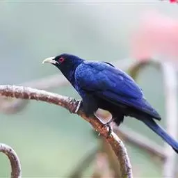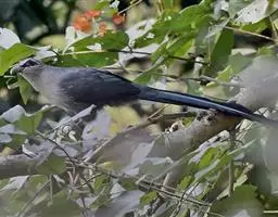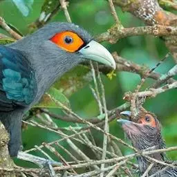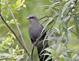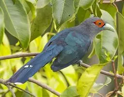 绿嘴地鹃:体形似小鸦鹃,但羽色大致绿灰;嘴绿色,头侧眼的周围有一裸区;后爪弯曲。虹膜赤红色,…
