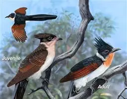 大杜鹃:是普通杜鹃的中国亚种。体长约320毫米,翅长约210毫米。雄鸟上体纯暗灰色;两翅暗褐,翅缘…