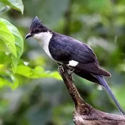 斑翅凤头鹃: 成鸟具羽冠,上体及头侧、翅、尾等黑色,具铁绿色亮辉,尾羽端部具白斑,两侧者形宽,…