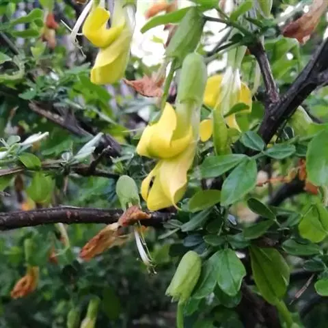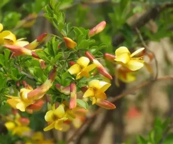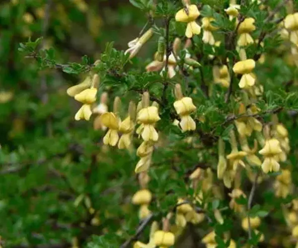 红花锦鸡儿枝繁叶茂,花冠蝶形,黄色带红,形似金雀,花、叶、枝可供观赏,园林中可丛植于草地或配植于坡地,山石旁,或作地被植物。