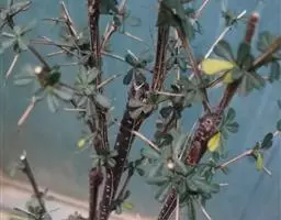 每年4-5月进行扦插,选取健壮、无病虫、开花多的1年或2年生枝条,剪成10-15厘米,每个扦穗有3-5个芽,剪去下枝刺,保留插穗上端叶片,在下端节下0.5厘米处斜切。插穗的1/3-1/2插入沙土中,地面上部留1-2个芽,然后立即喷透水。为提高扦插成活率,可采用吲哚丁酸生根粉,方法在含量为500毫克/千克的溶液中蘸5-10秒再扦插。