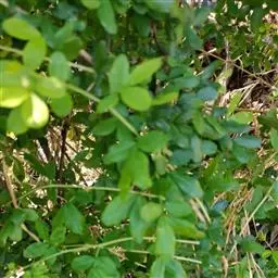 灌木,高0.4-1米。树皮绿褐色或灰褐色,小枝细长,具条棱,托叶在长枝者成细针刺,长3-4毫米,短枝者脱落;叶柄长5-10毫米,脱落或宿存成针刺;叶假掌状;小叶4,楔状倒卵形,长1-2.5厘米,宽4-12毫米,先端圆钝或微凹,具刺尖,基部楔形,近革质,上面深绿色,下面淡绿色,无毛,有时小叶边缘、小叶柄、小叶下面沿脉被疏柔毛。