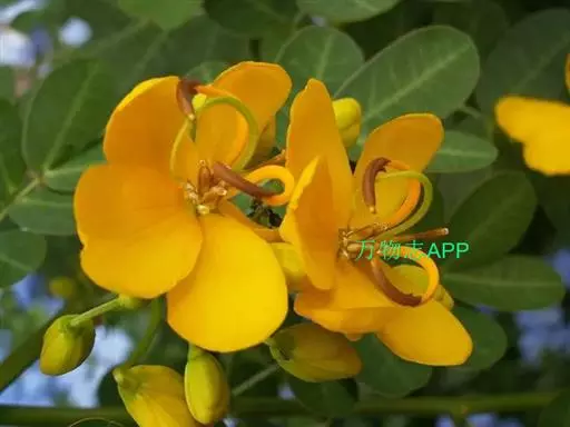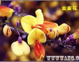 花梗单生,长8-18毫米,关节在中部以上,无毛;花萼管状,不扩大或仅下部稍扩大,长7-9毫米,宽约4毫米,常紫红色,萼齿三角形,渐尖,内侧密被短柔毛;花冠黄色,常紫红色或全部淡红色,凋时变为红色,长20-22毫米,旗瓣长圆状倒卵形,先端凹入,基部渐狭成宽瓣柄,翼瓣长圆状线形,瓣柄较瓣片稍短,耳短齿状,龙骨瓣的瓣柄与瓣片近等长,耳不明显;子房无毛。荚果圆筒形,长3-6厘米,具渐尖头。花期4-6月,果期6-7月。