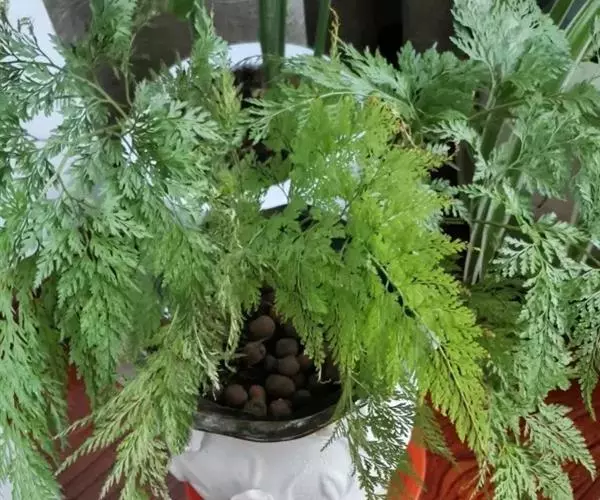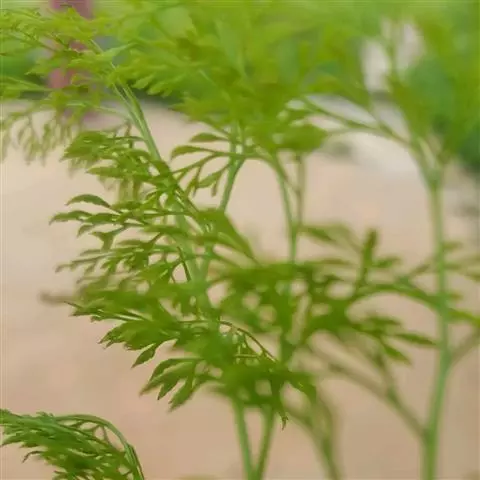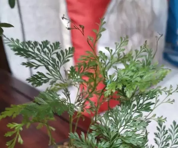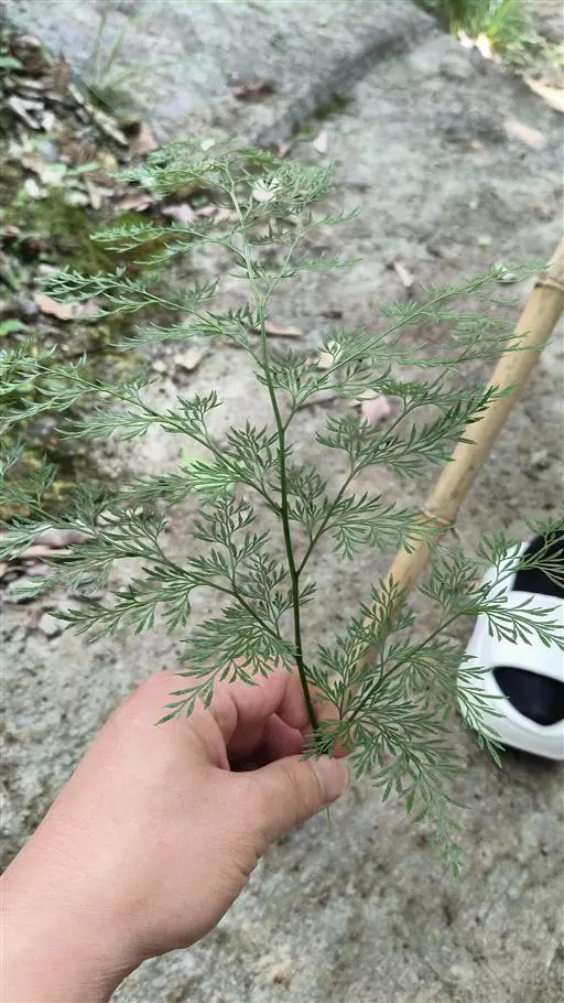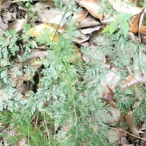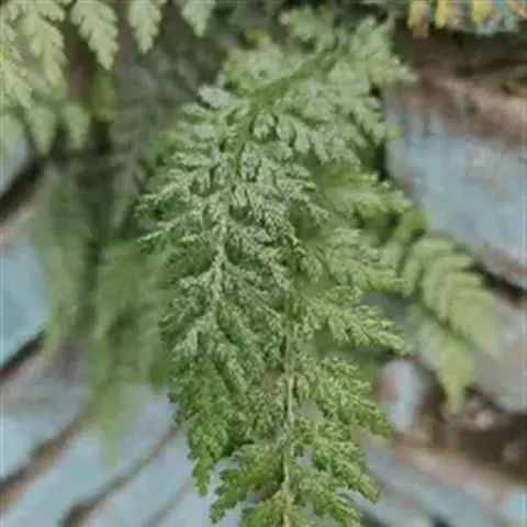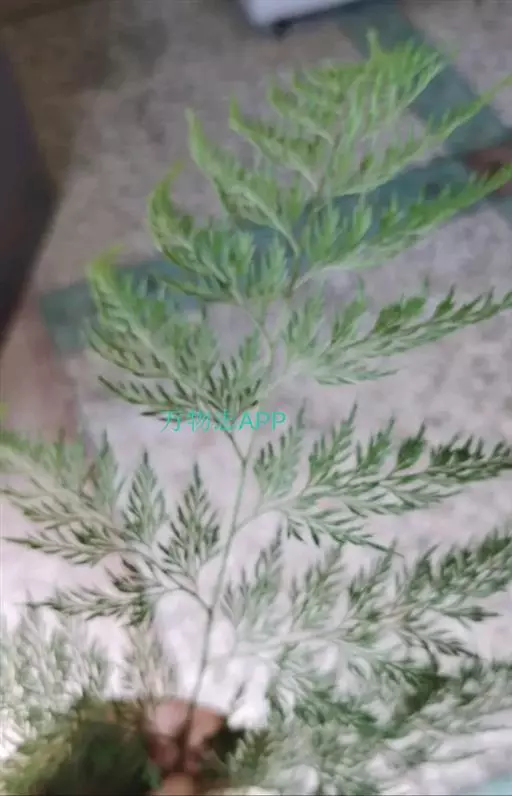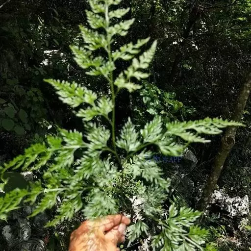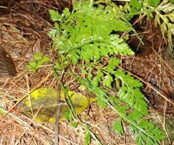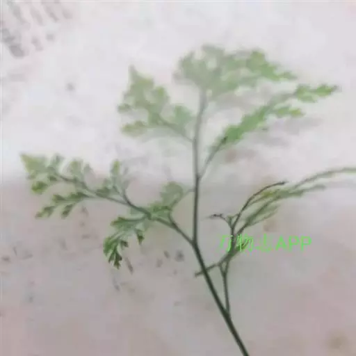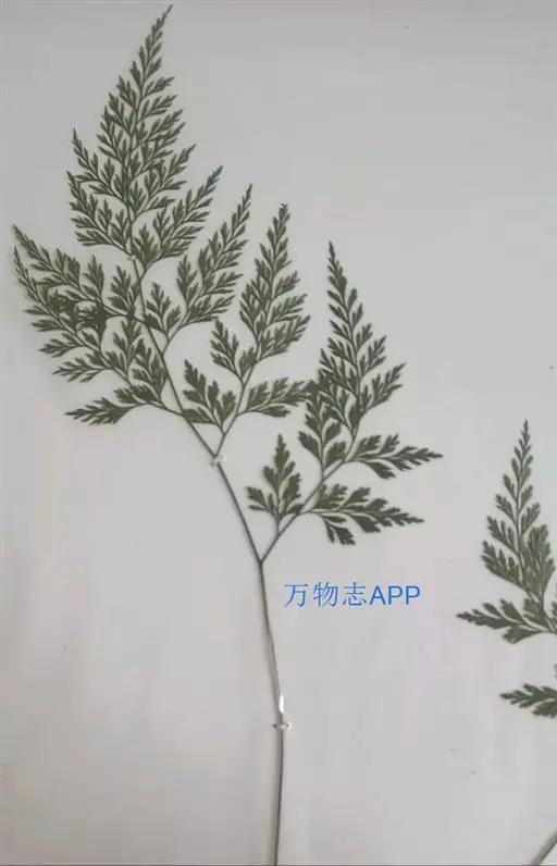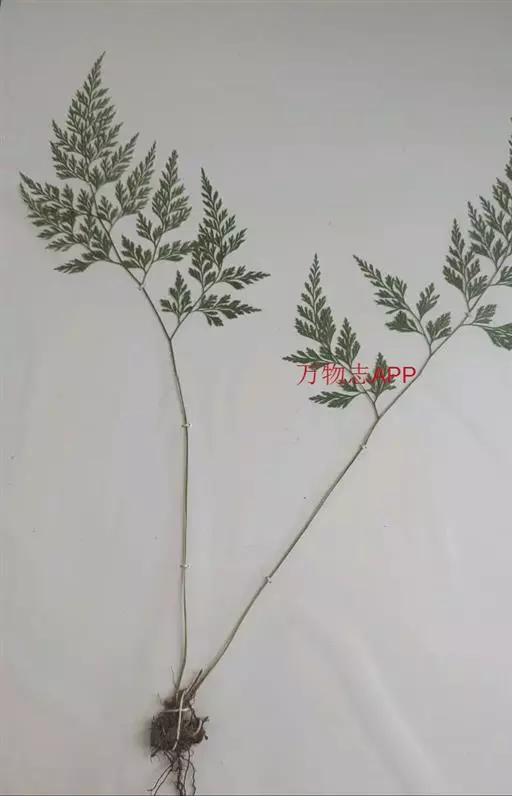 植株高60厘米 1-7 左右。根状茎长而横走,粗3毫米左右,疏被鳞片,鳞片棕色或红棕色,披针形,筛孔明显。叶散生;柄长2-30厘米,基部褐棕色,略有鳞片,向上禾杆色(有时下部略饰有棕色),光滑;叶片几和叶柄等长,宽约10厘米或过之,卵状三角形或卵状披针形,渐尖头,四回羽状细裂;羽片12-15对,互生,柄长1-2厘米,基部一对最大,长9-17厘米,宽5-6厘米,长圆披针形或三角状披针形,先端渐尖,并具羽裂尾头,三回羽裂;各回小羽片彼此接近,均为上先出,照例基部一对最大;末回能育小羽片或裂片长5-7毫米,宽1.5-2毫米,线状披针形,有不育的急尖头;末回不育裂片短而狭,线形或短披针形,短尖头;叶轴和各回育轴上面有浅沟,下面凸起,不育裂片仅有中脉一条,能育裂片有斜上侧脉和叶缘的边脉汇合。叶干后坚草质或纸质,灰绿色或绿色,遍体无毛。孢子囊群长(3)5-6毫米;囊群盖线形或短长圆形,膜质,灰白色,全缘。