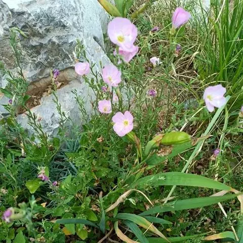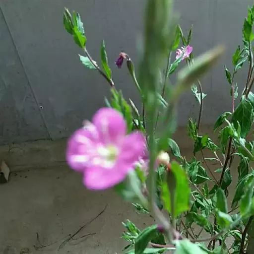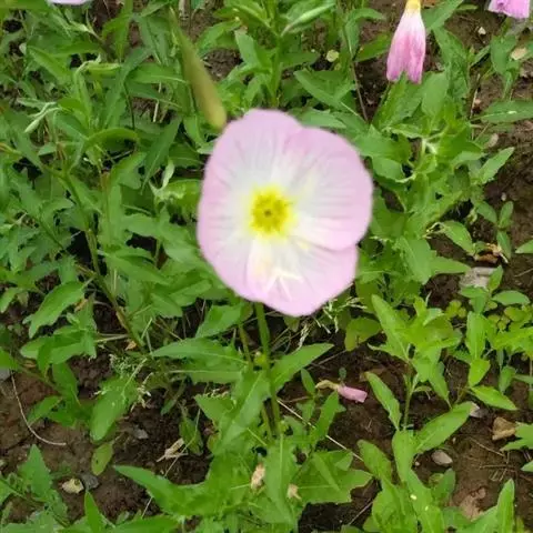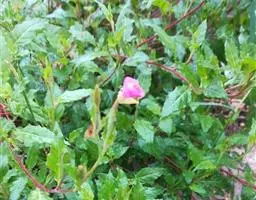 粉花月见草,拉丁文名:Oenothera rosea L Herpt. ex Ait. ,是桃金娘目、柳叶菜科、月见草属多年生草本,具粗大主根(粗达1.5厘米);茎常丛生,上升,长30-50厘米,多分枝,被曲柔毛,上部幼时密生,有时混生长柔毛,下部常紫红色。基生叶紧贴地面,倒披针形,先端锐尖或钝圆,自中部渐狭或骤狭,并不规则羽状深裂下延至柄;叶柄淡紫红色,先端下部的钝状锐尖,中上部的锐尖至渐尖,基部宽楔形并骤缩下延至柄,边缘具齿突,基部细羽状裂,蒴果棒状,翅间具棱,顶端具短喙;种子每室多数,近横向簇生,长圆状倒卵形,花期4-11月,果期9-12月。