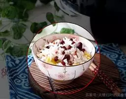 4把玉米粒从牛奶中取出放到刚才的奶酪丝上,上面洒上淡奶和炼乳