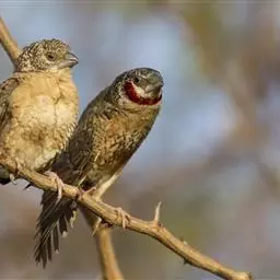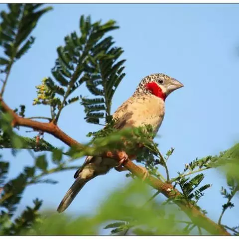 红颊蓝饰雀,是鸟纲雀形目梅花雀科蓝饰雀属的一种,分布于非洲撒哈拉以南的大部分地区。栖息地包括亚热带或热带的(低地)干燥疏灌丛、牧草地、耕地、干燥的稀树草原、亚热带或热带的(低地)干草原和乡村花园。主食草籽,喜爱鸣叫。