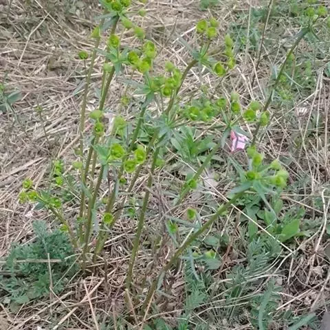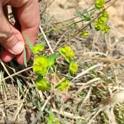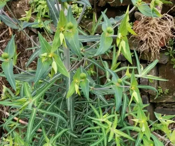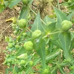 续随子(学名:Euphorbia lathylris L),又称千金子,为大戟科、大戟属下的一种二年生草本。全株无毛,根柱状,茎直立。叶交互对生,线状披针形,全缘。花序单生,近钟状。雄花多数,雌花1枚。蒴果三棱状球形,光滑无毛。种子柱状至卵球状,褐色或灰褐色。花期4-7月,果期6-9月。产中国大部分省区,栽培或逸为野生广泛分布或栽培于欧洲、北非、中亚、东亚和南北美洲。全草有毒。具药用价值。 续随子种子含油量一般达45%左右,高的可达48%以上。续随子油的脂肪酸组成与柴油替代品的分子组成相类似,其主要成分是倍半烯萜,富含巨大戟二萜醇3一十六烷酯,植株乳汁富含大量烯烃类碳氢化合物,是生产生物柴油的理想原料之一。