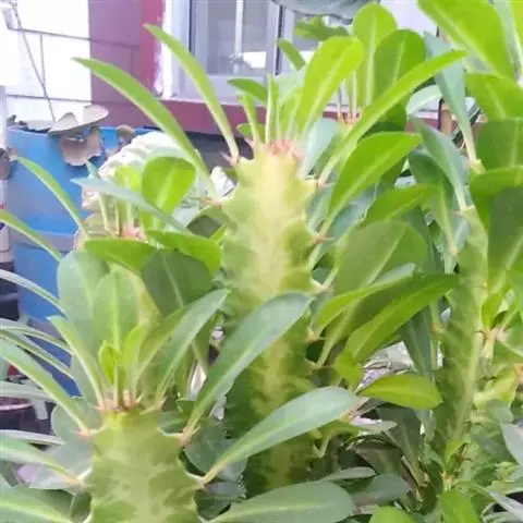 小乔木,高2~6米,直径10~25厘米,老时呈灰色或淡灰色,幼时绿色,上部平展或分枝;小枝肉质光棍…