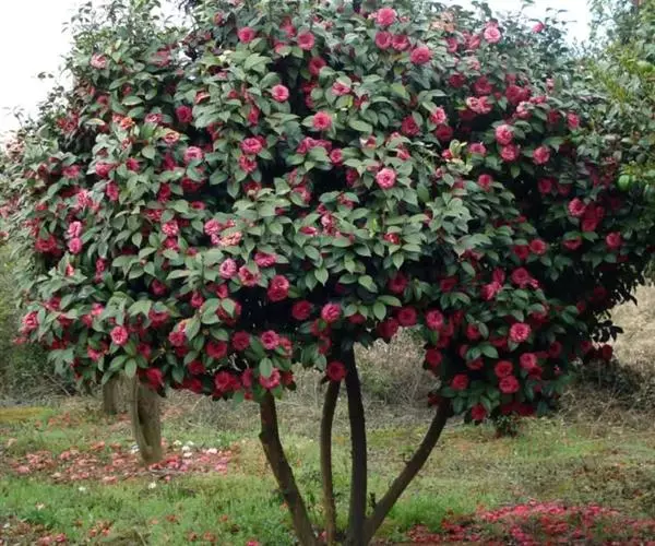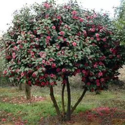 山茶为中国的传统园林花木,据资料记载,云南省昆明市近郊太华寺院内,有山茶老树一株,相传为明朝初年建文帝手植。昆明东郊茶花寺,有红山茶一株,为宋朝遗物,高达20米,每当花季,红英覆树,花人如株,状如牡丹。山茶树冠多姿,叶色翠绿,花大艳丽,枝叶繁茂,四季长青,开花于冬末春初万花凋谢之时,尤为难得。古往今来,很多诗人写下了赞美山茶的诗句。郭沫若先生曾用“茶花一树早桃红,白朵彤云啸做中”的诗句赞美山茶盛开的景况。