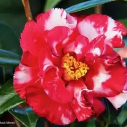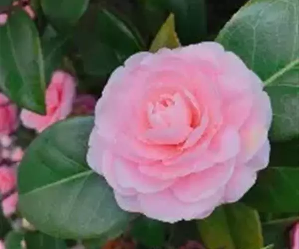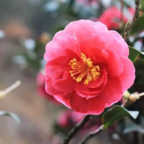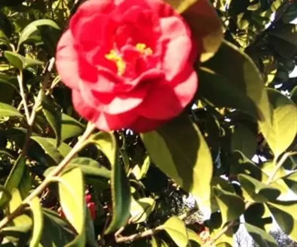 山茶(学名:Camellia japonica L. ):是双子叶植物纲山茶科植物。灌木或小乔木,高9米,嫩枝无毛。叶革质,椭圆形,先端略尖,基部阔楔形,上面深绿色,干后发亮,无毛,下面浅绿色。花顶生,红色,无柄;苞片及萼片约10片,花瓣6-7片,外侧2片近圆形。蒴果圆球形,直径2.5-3厘米,2-3室,每室有种子1-2个,3爿裂开,果爿厚木质。花期1-4月。