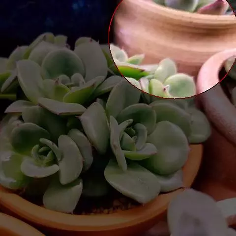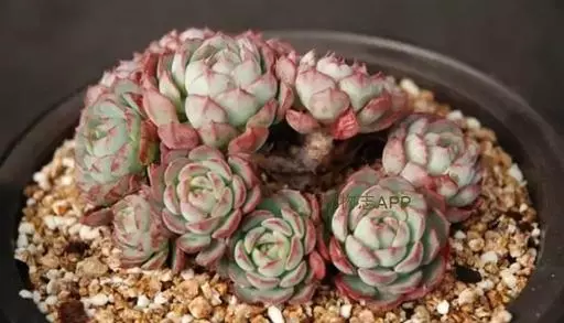 叶形和株型外观和蓝姬莲及极其相似,爱斯诺易出侧芽爆盆呈群生状。叶子密集,蓝绿色,排成呈莲座状,具明显的叶尖,匙形叶,叶面稍内凹,背部稍隆起,出状态的肉肉叶缘泛粉红至红紫色。